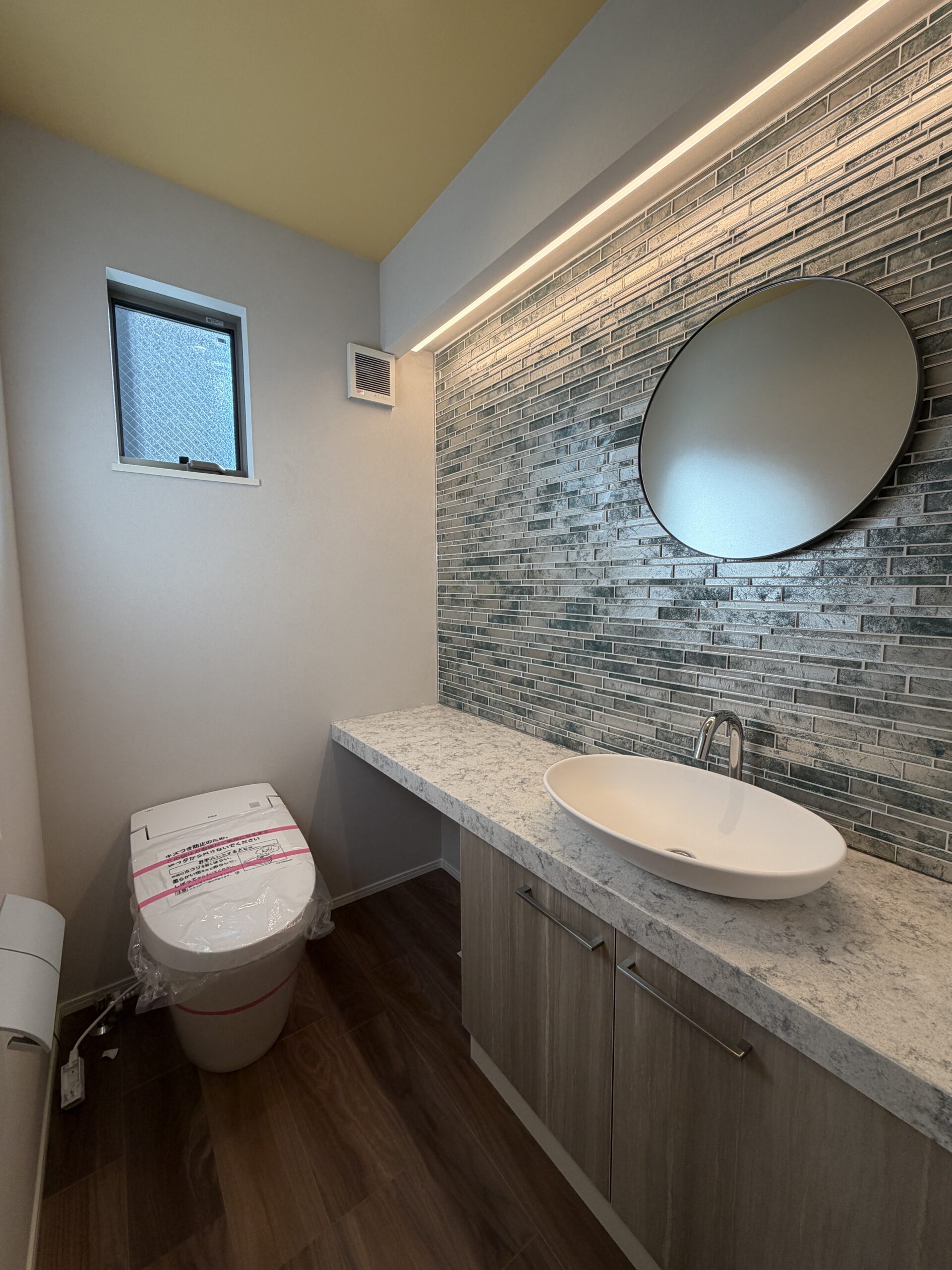 洗面所とお手洗いには清潔感とデザイン性を兼ね備えた最新設備を導入。タンクレストイレは空間をすっきりと見せるだけでなく、掃除のしやすさも魅力です。また、全てのお手洗いに独立した手洗い場を設けることで、来客時にも安心して使用できる環境を整えました。