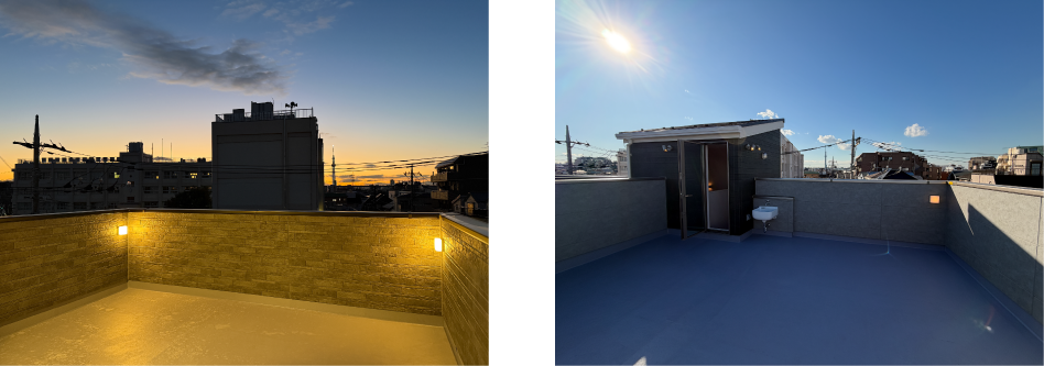 屋上には広々としたルーフバルコニーを完備。ホームパーティーやガーデニング、夜には星空を眺めながらくつろげる非日常のひとときを演出します。さらに、各部屋ごとにバルコニーを設置し、個々のプライベート時間も充実。室内に心地よい光と風を取り込み、住まい全体の開放感を高めます。