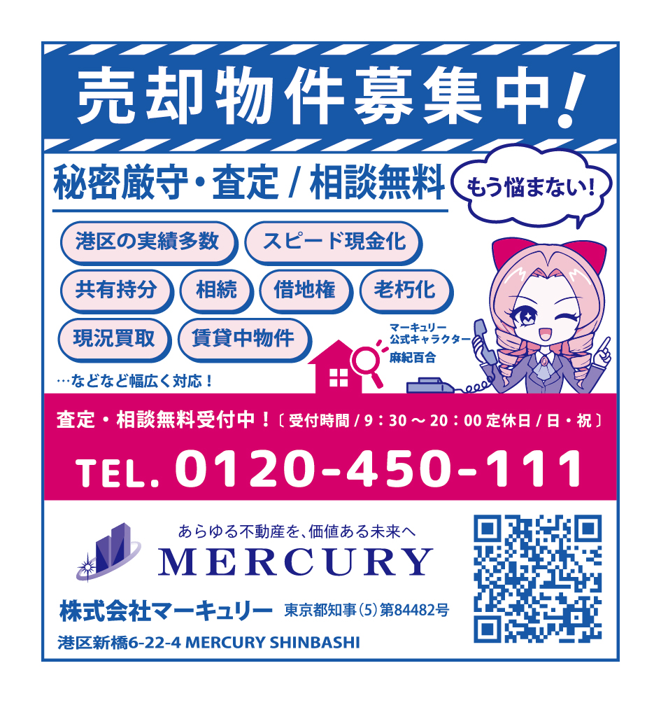 株式会社マーキュリー(本社:東京都港区、取締役代表:宮地博明)は、都内5区の各区役所ホームページ(大田区・品川区・世田谷区・中央区・文京区)において、弊社サイトのバナー広告が掲載されるとともに、港区役所で配布される封筒に弊社公式キャラクター「麻紀百合」が採用されました。